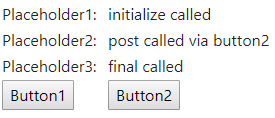 For this example, we actually don't need to use the get_callbacks method since we could simply place our code in the post method however, let's assume there is other processing we want to perform. Consider the following method definition: Since the get_callbacks method is coded, other standard methods such as initialize, get and post will not be called. Instead, the form calls the get_callback method and it returns an array of method names that are to be called. In the example above, if this is not a postback only the configure_buttons method will be called. If this is a postback, the form will call the following methods in sequence: