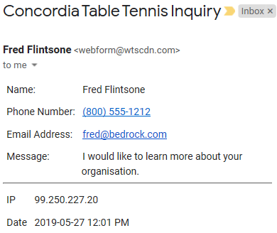 The mailform model is used to send web forms via email. When a web visitor fills out a form you often want to send the form details to certain company representatives. This is done using mailforms. You can also define a webform to send an email to a customer or prospect. Before creating a mailform definition refer to the help for email recipients. Repurposing Web Forms as Email ContentOne of the powerful features of forms and layouts is that they allow content to be reformatted and re-purposed. Consider the following web form used on a contact page: